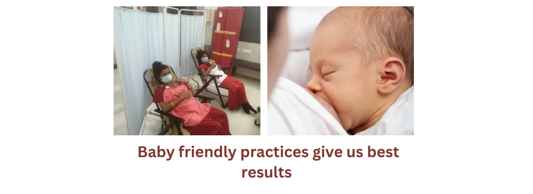 Baby friendly practices (like exclusive breastfeeding, KMC, special bedside cots for newborn babies)