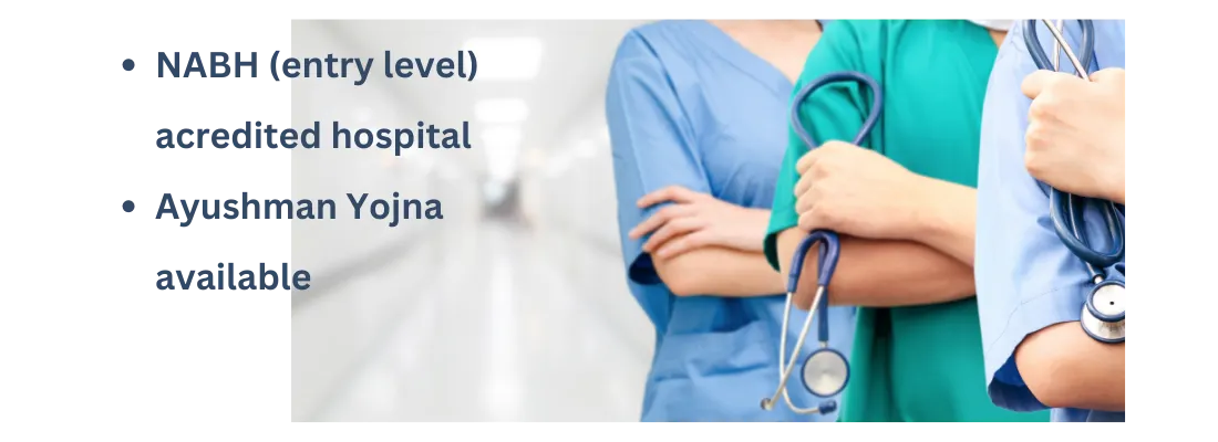 A 30-bedded hospital, authorized under Ayushman Yojana, entry level NABH accredited & tie up with various TPAs